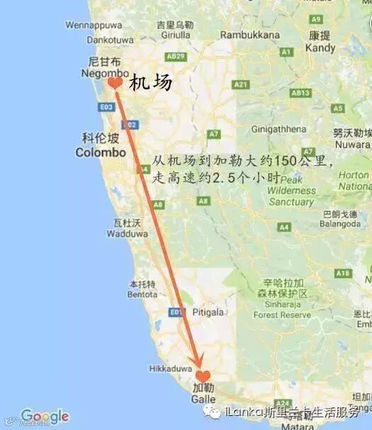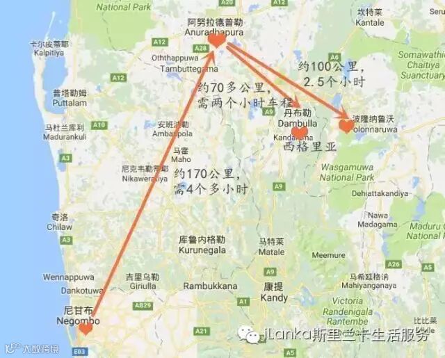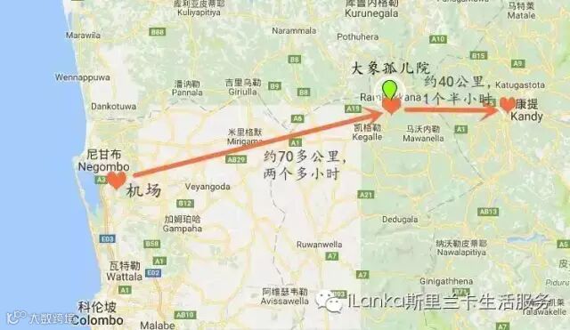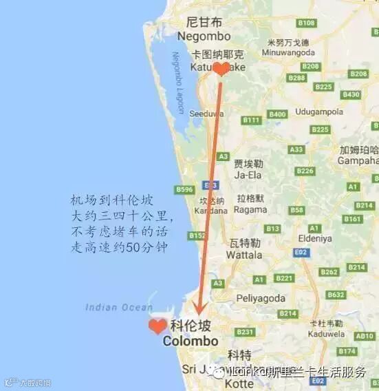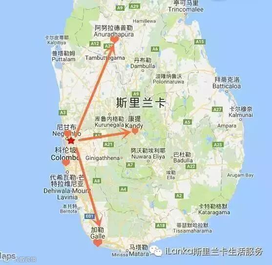 因为机场和尼甘布、科伦坡距离都很近,所以上图就不摆箭头了,机智如你,一定可以看出是哪五条线路吧?