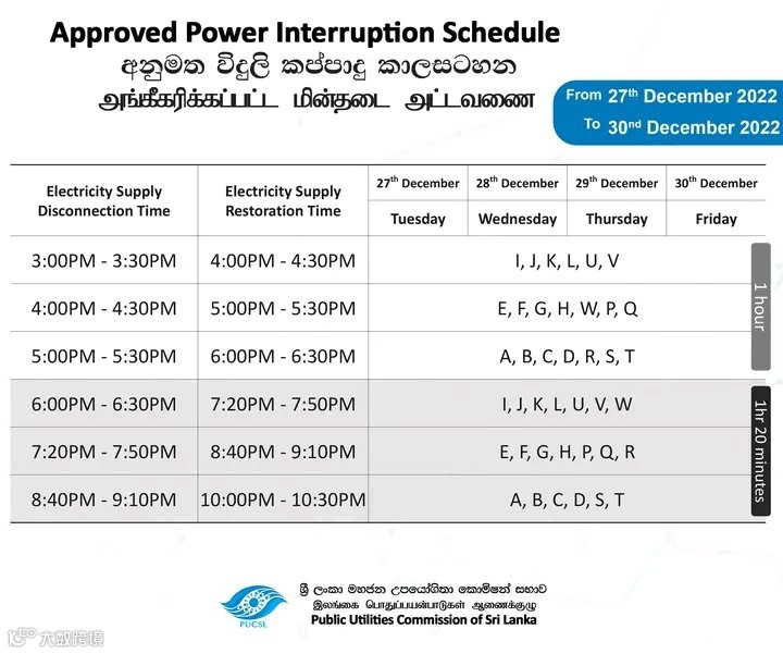 12月29日至30日停电情况如下: