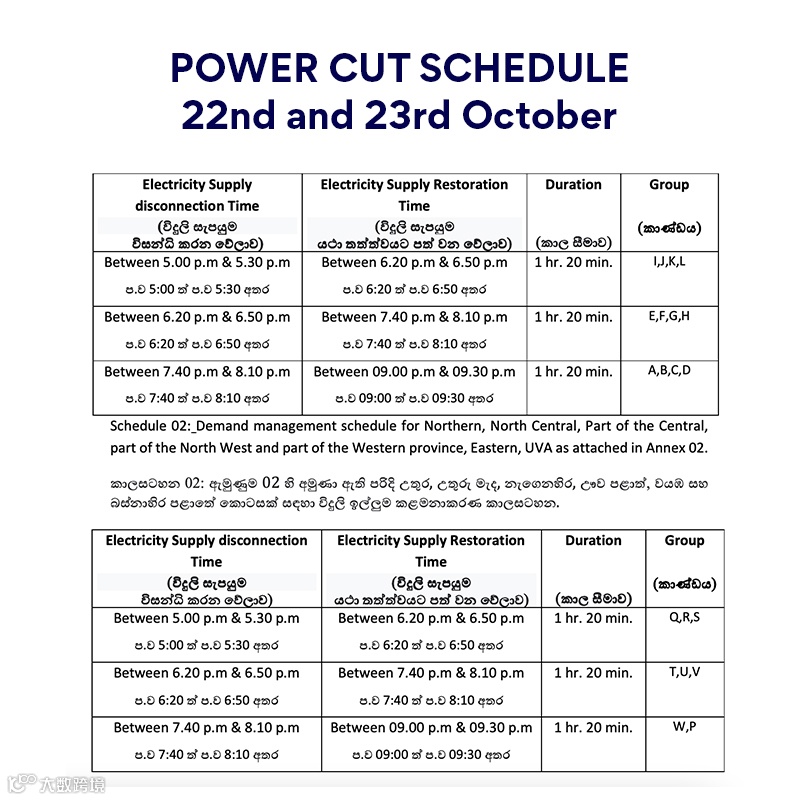 (字母代号所属区域可通过此链接进行查询:https://cebcare.ceb.lk/Incognito/DemandMgmtSchedule,或者点击文末左侧的“阅读原文”)