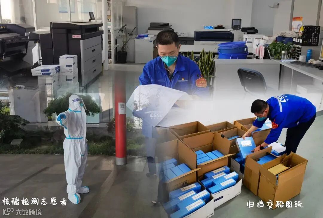科技发展部档案室主任刘冀平复工期间防疫复工两不误。根据公司交船任务安排,在人员不足、图纸制作周期短的情况下,一人承担起H1532、H1529两艘完工船舶竣工图纸的整理提交工作,按时完成约2000份图纸的接收打印、整理分类、核对装盒等工作。同时,他积极参加核酸检测志愿工作,协助做好部门驻厂人员信息更新等相关工作。