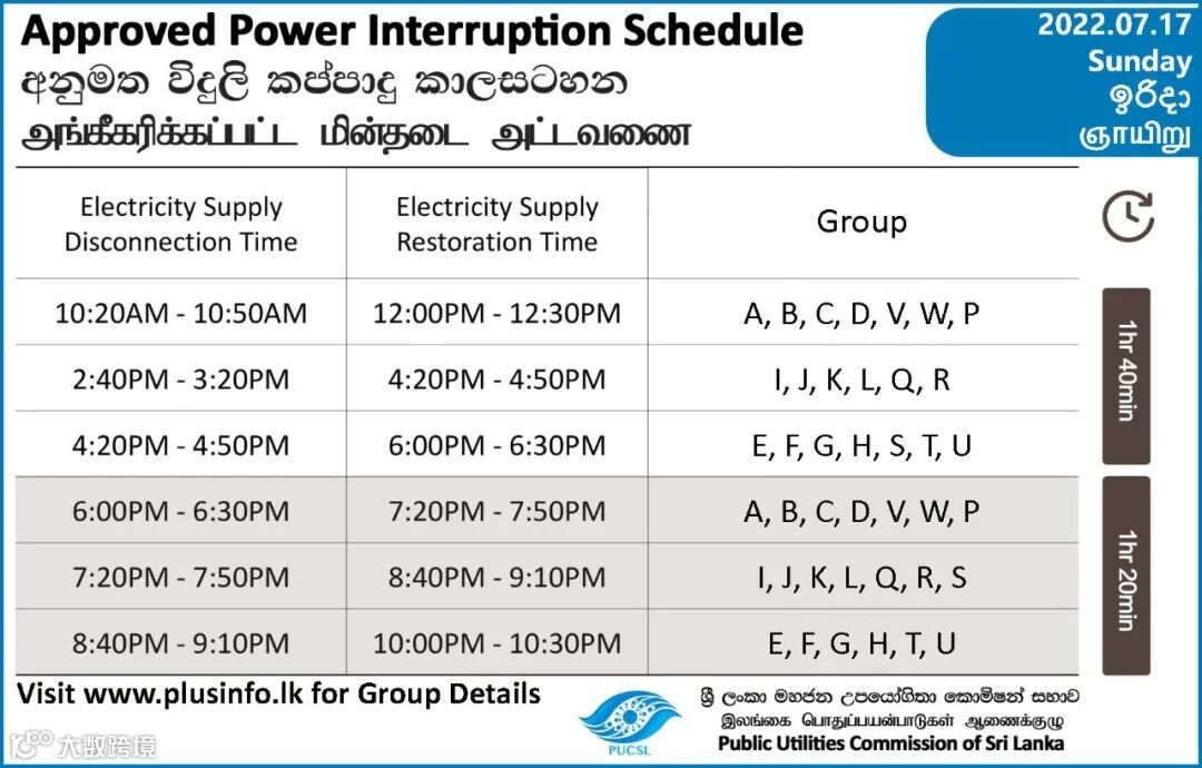 (字母代号所属区域可通过此链接进行查询:https://cebcare.ceb.lk/Incognito/DemandMgmtSchedule,或者点击文末左侧的“阅读原文”)