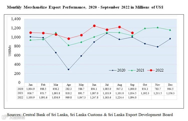 根据斯海关最新数据,2022年9月,商品出口收入同比增长5.75%,达到10.9398亿美元。这主要是依赖于服装和纺织品、茶叶、宝石和珠宝、电气和电子元件以及香料和精油的出口收入的增加。据此,2022年前9个月的商品出口额达到100亿美元。