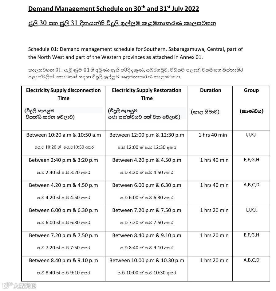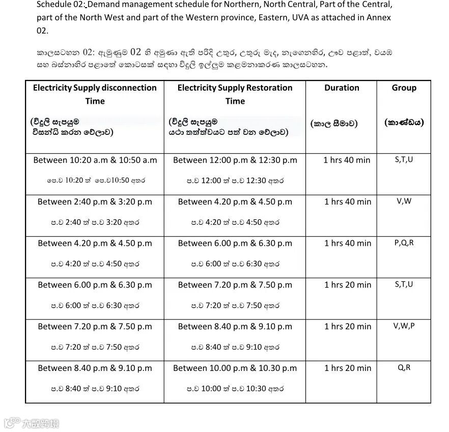 (字母代号所属区域可通过此链接进行查询:https://cebcare.ceb.lk/Incognito/DemandMgmtSchedule,或者点击文末左侧的“阅读原文”)