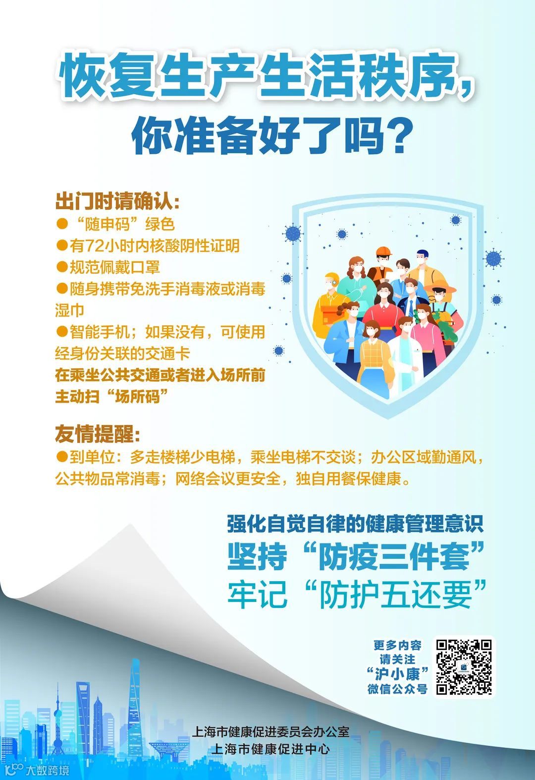 不松懈、不麻痹、不侥幸,坚持“防疫三件套”、牢记“防护五还要”,强化自觉自律的自我健康管理意识,用每一个人的努力,确保平安、平稳恢复正常生产生活秩序。