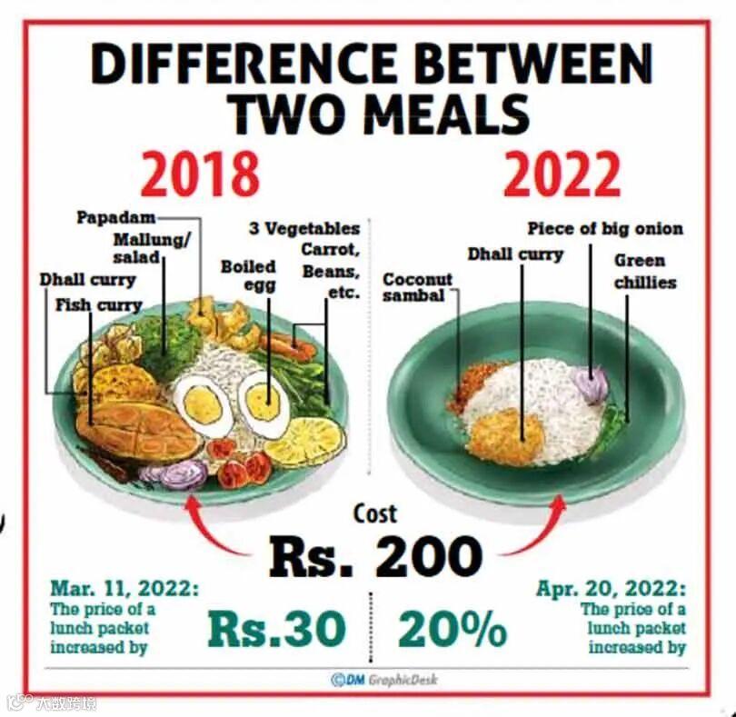 2018年和2022年的对比,200卢比的购买价值差别太大,这正是斯里兰卡面临的经济危机缩影。