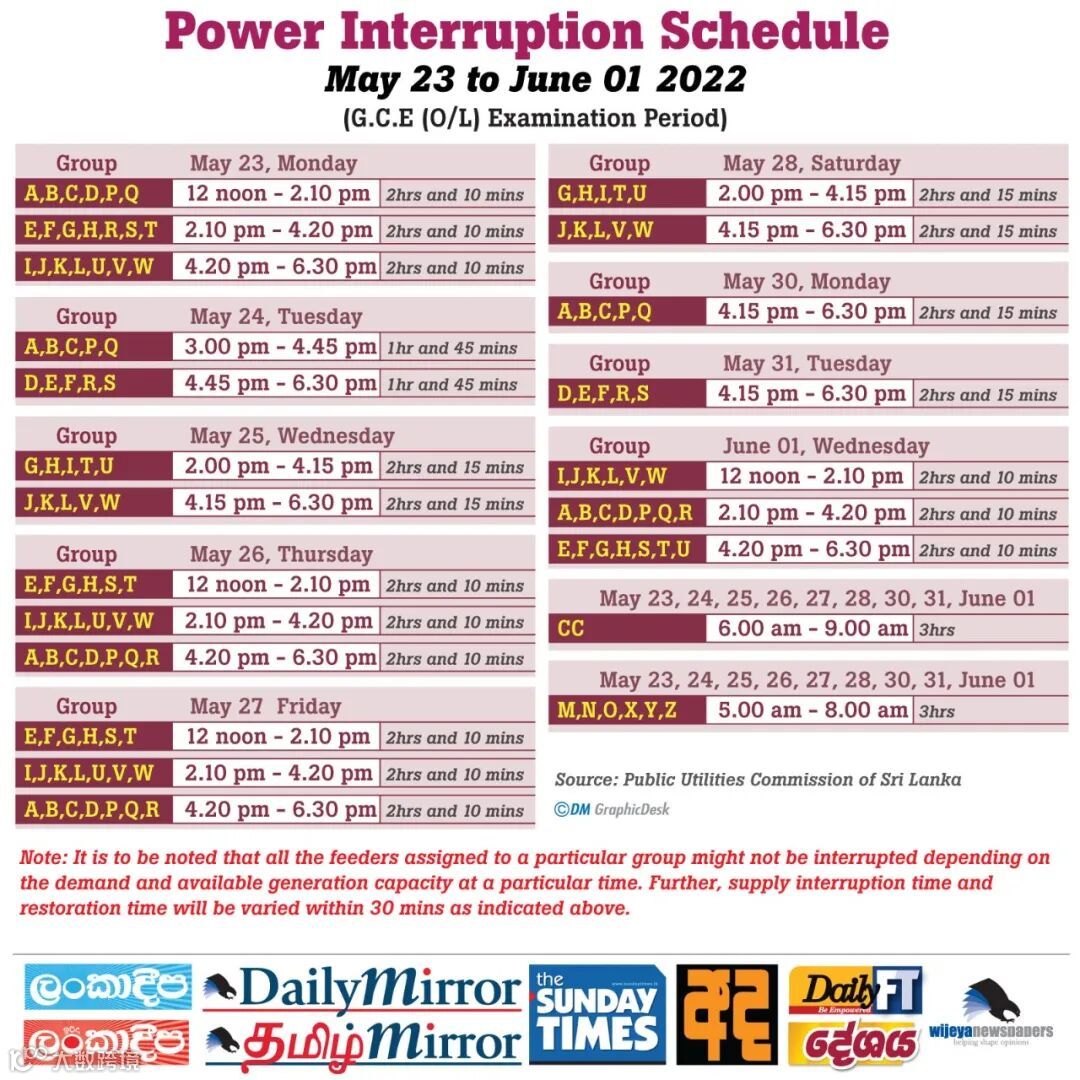 (字母代号所属区域可通过此链接进行查询:https://cebcare.ceb.lk/Incognito/DemandMgmtSchedule,或者点击文末左侧的“阅读原文”)