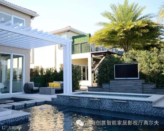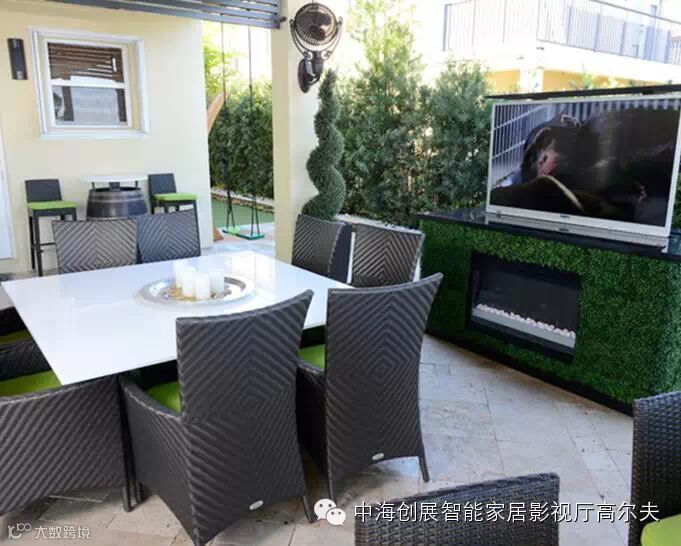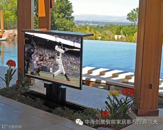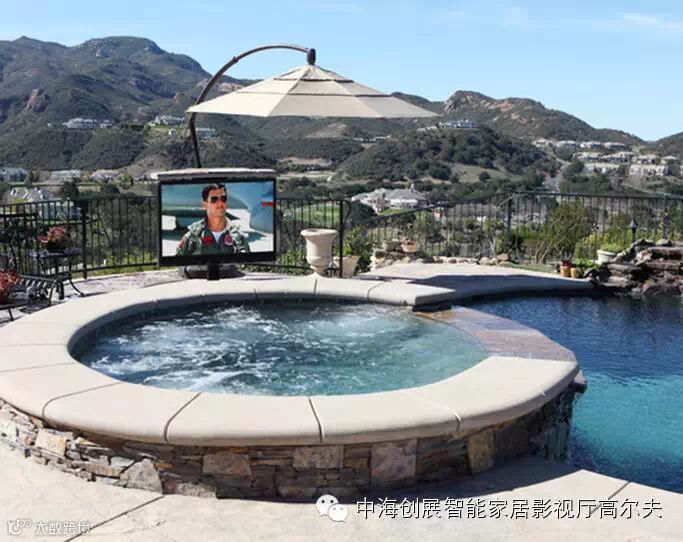 再一次,在不破坏装修风格的情况下,让业主在户外也可尽情观看电视节目。电视还是可360度旋转的。