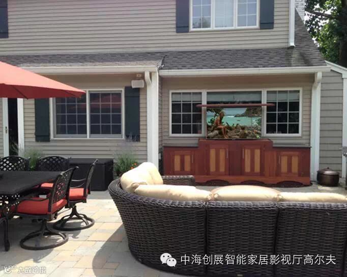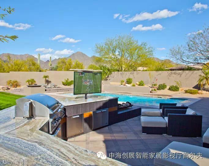 如果你在亚利桑那州的绿洲拥有一座宅院,想象一下一边吃着香喷喷的烤肉,喝着啤酒,一边观看比赛的感觉吧!电视、壁炉、喷泉都是通过智能家居系统控制的。