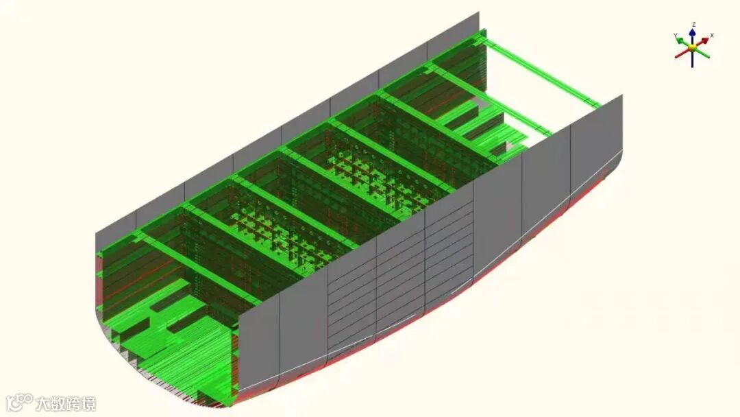 举例说,当前船舶设计模式是,(1)开发或基本设计设计时用Auto CAD软件绘制二维图(例如总布置图、典型剖面图等)、用NAPA等软件建立三维模型进行总体性能计算等,船级社软件进行结构有限元分析等,形成图纸送审船级社;(2)生产设计阶段,以送审图纸为设计输入进行三维建模,生成用于生产的图纸及零件信息。在不同的设计阶段,由于软件之间兼容性不够,二维软件、三维软件、CAE软件、船舶性能软件等这些软件间无法实现高效的数据转化,模型需要重建,数据源不统一,设计模型不能共用,复用;图纸与模型交替表达,图纸处理重复工作量大;各阶段之间存在严格的分割。这既耗费了大量人力投入,影响设计效率,也势必降低设计质量。而船舶三维数字化设计通俗地讲,就是以3D模型为主、2D图纸为辅,船舶各专业使用统一的三维设计软件平台生成统一模型,作为整个设计周期的单一的数据源,实现模型数据的共用与复用。重构船舶设计新模式,能很好解决以上问题。