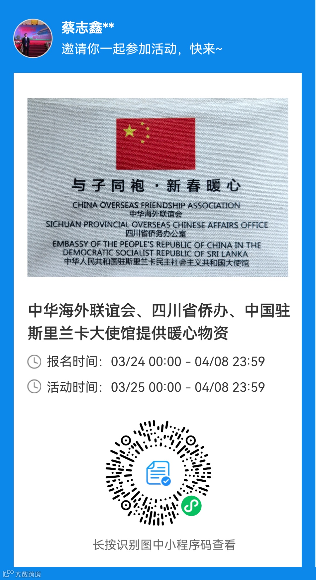 新年伊始之际,中华海外联谊会、四川省侨办、中国驻斯里兰卡大使馆给在斯侨民送来暖心物资,也为大家送来党和政府的关怀,希望大家守望相助,虎年安康。