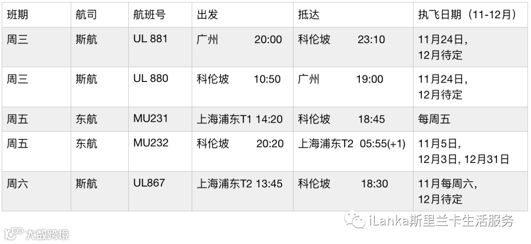另外,科伦坡机场转机时间最多不超过12小时的限制已经被取消。