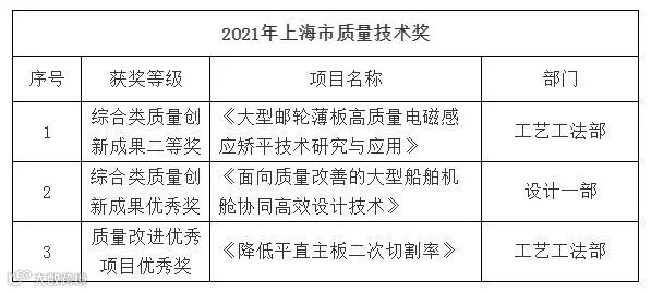 此次“中国质量技术奖”和“上海市质量技术奖”的评选获奖,是对公司优秀质量文化和夯实质量基础的充分肯定与认可,是公司“六位一体”质量保证体系先进性的证明,进一步展现了外高桥造船在质量管理领域的领先地位。