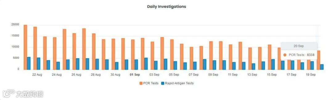 因此,昨天仅仅进行了8,338次PCR测试和2,181次RAT测试。而8月21日全国做的PCR和RAT的数量分别为19,963和5,473。