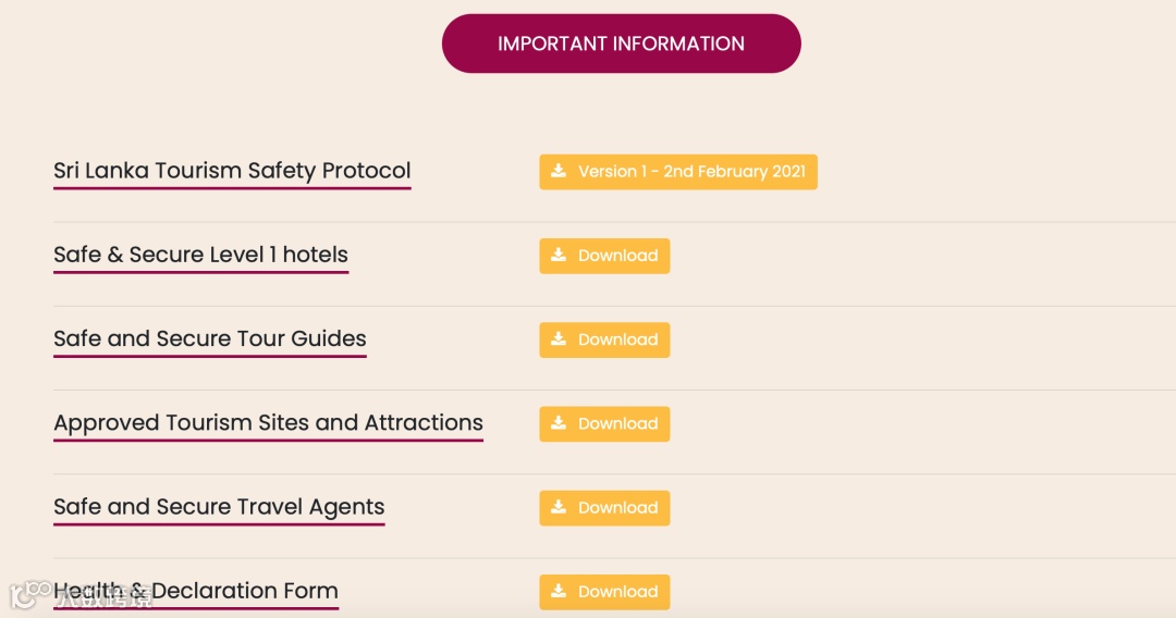 酒店选择,请登录 www.srilanka.travel/helloagain/:(或点击文末的“阅读原文”,寻找“Safe & Secure Level 1 Hotels”,如下图)