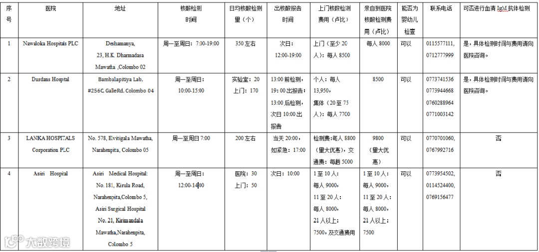 请注意,下表中的Nawaloka医院的联系电话有变,请大家注意更新: