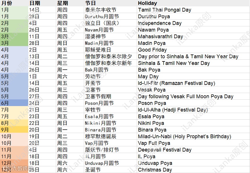 另外,大家需注意,每逢Poya月圆节兰卡不卖生肉和酒类,月圆节前请屯好食材。