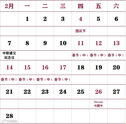 是中斯建交64周年,中斯世代友好,小编特此将这一天列入表格中,但是这一天不属于公众假日不放假哦!