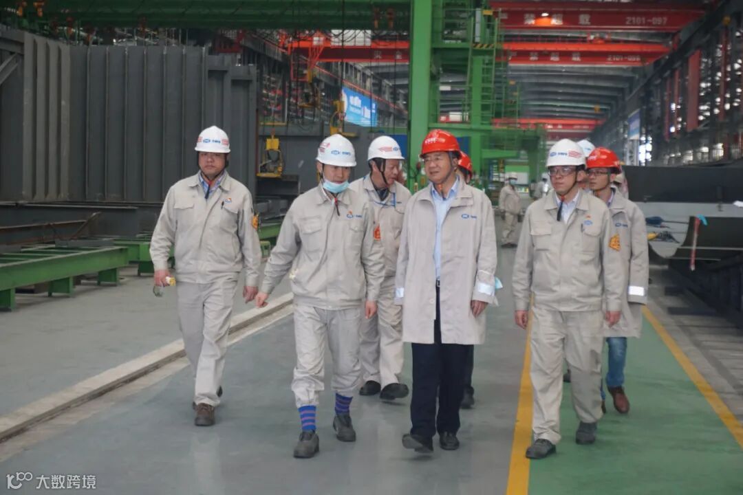 章韬一行首先来到薄板中心,认真考察了薄板流水线运行情况,并来到2#船坞了解国产首艘大型邮轮建造情况。在座谈会上,双方各自介绍了公司发展现状和在建产品情况。