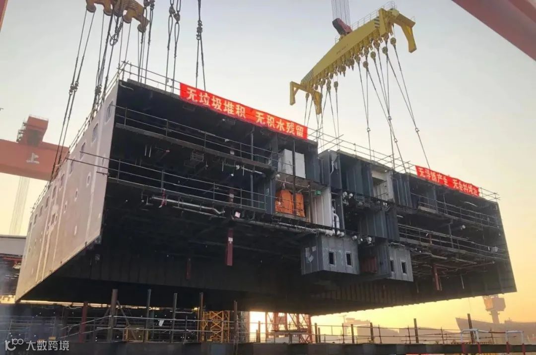 N2总段是首个进行移位入坞搭载的薄板总段,长29米,宽37.2米,高8.6米,如何有效控制薄板变形是此次移位吊装的最大难题。