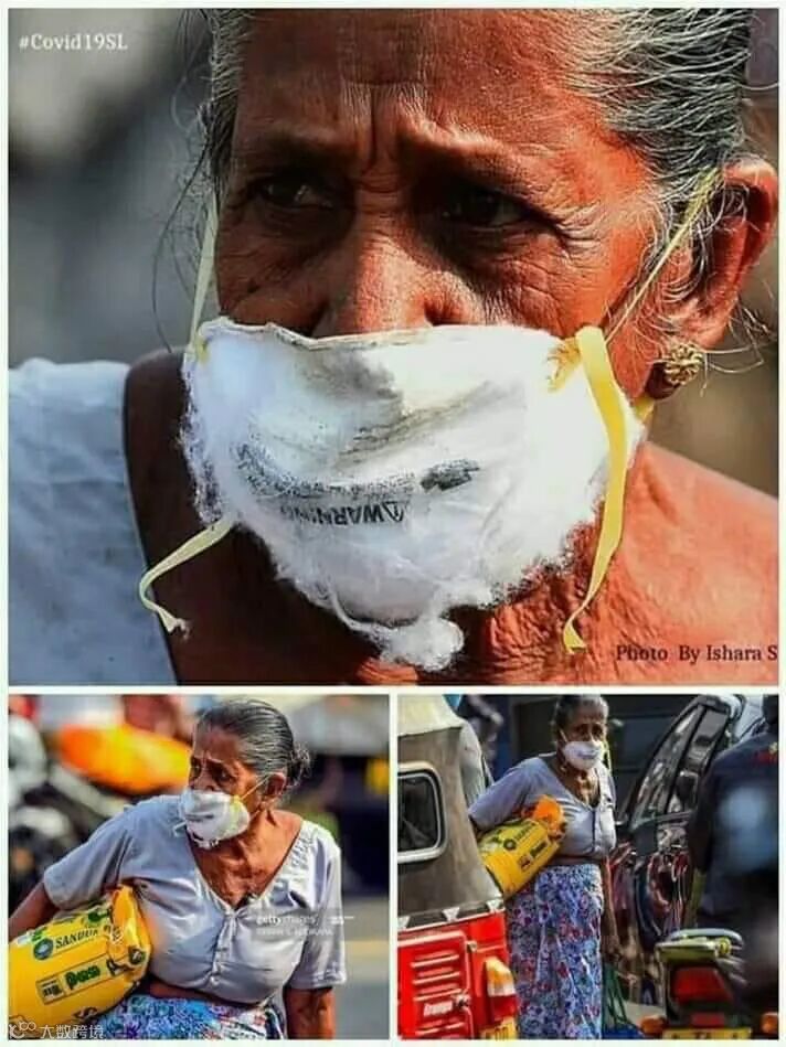 另一组图片,看着有些心酸。这位兰卡阿妈没有像样的口罩,戴了个破损的N95口罩,扛回了未来几天的口粮。希望她和她的一家人可以平安顺利度过这个特殊时期。