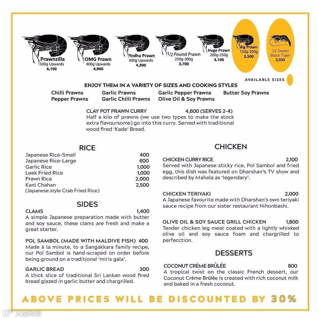 1. 直接可预订的螃蟹和虾尺寸,见下图菜单上标注黄色;
