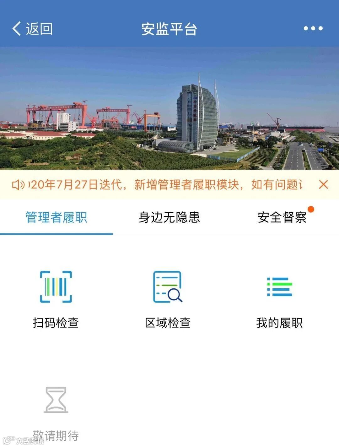 该系统于6月中旬开展需求调研,7月初确定方案并进行开发,最终于7月底上线试运行。在8月底举行的安全生产履职督查活动中,该系统全面推进应用。