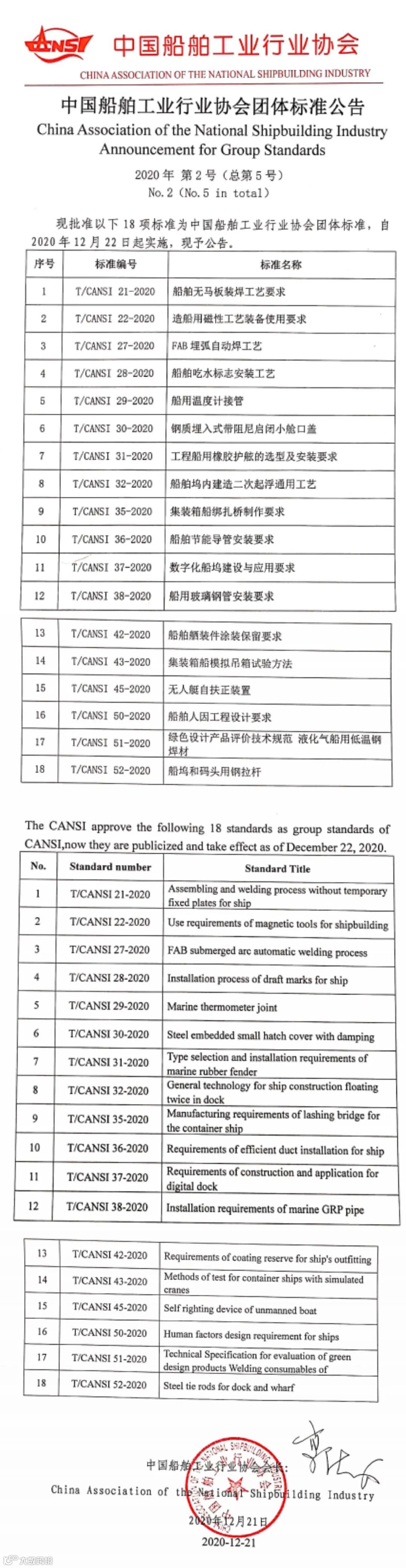 公司还参与编制了《船舶无马板装焊工艺要求》和《造船用磁性工艺装备使用要求》2项团体标准。