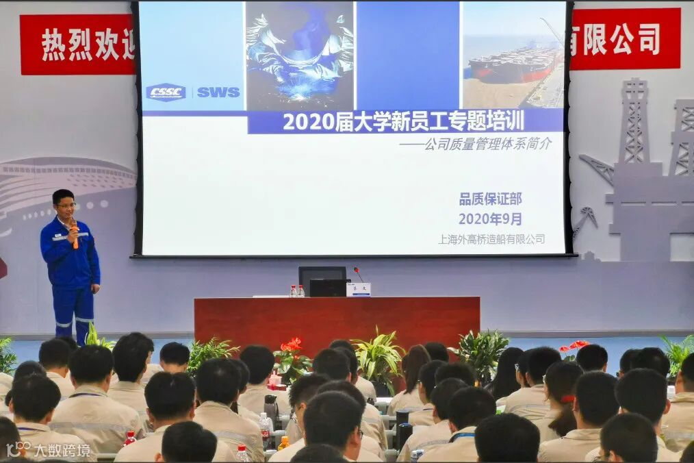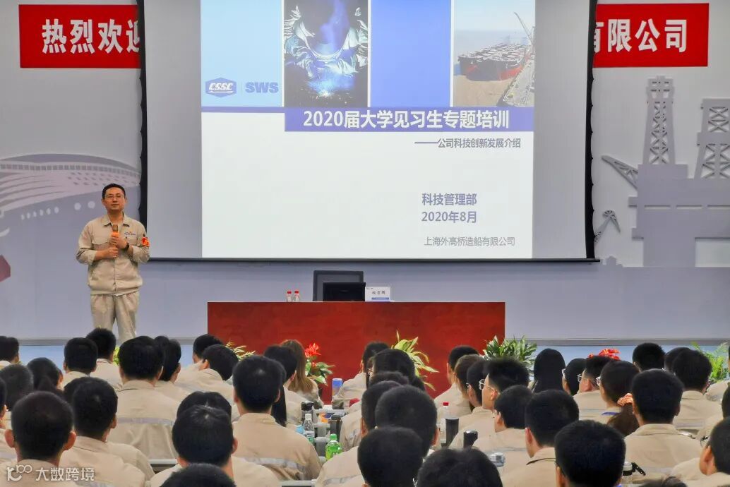 8月18日,公司举行2020届新员工欢迎仪式,公司领导班子代表全体员工欢迎2020届新员工加盟外高桥造船!