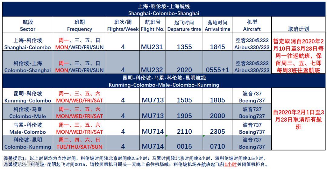 兰卡资讯 | 重要!中国往返斯里兰卡、马尔代夫各航班的已知调整信息汇总!