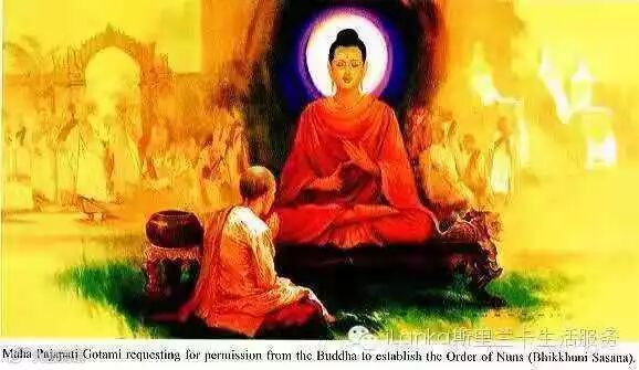 佛陀悟道后,有一次回家乡说法,在场有他的继母摩诃波阇波提夫人,她向佛陀请求说:“佛陀!请您的慈悲允许,让我们女众也能依照正法出家、修道,求受具足戒。”