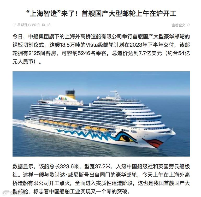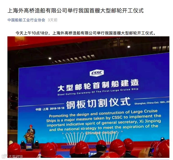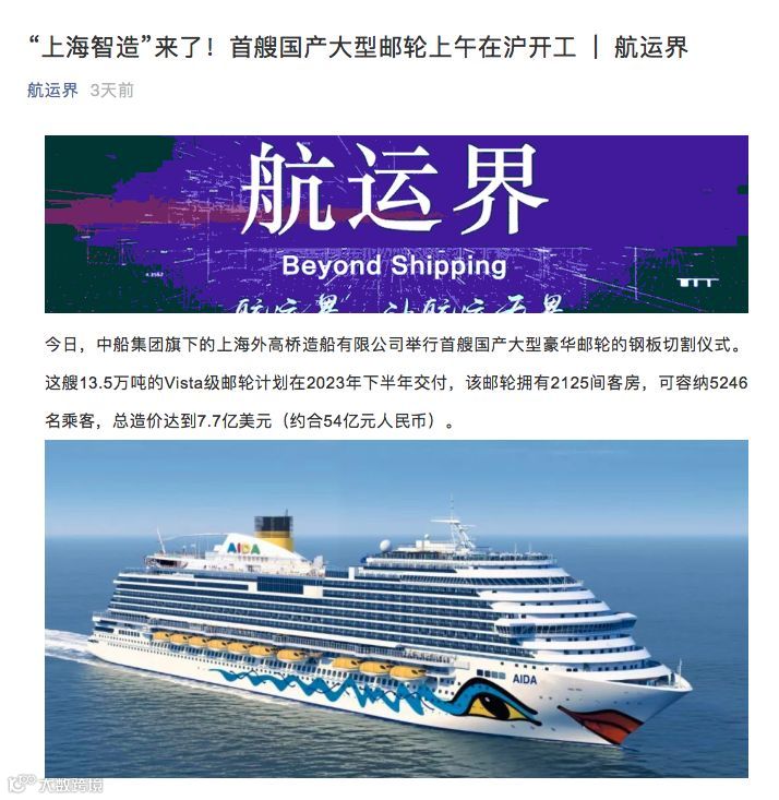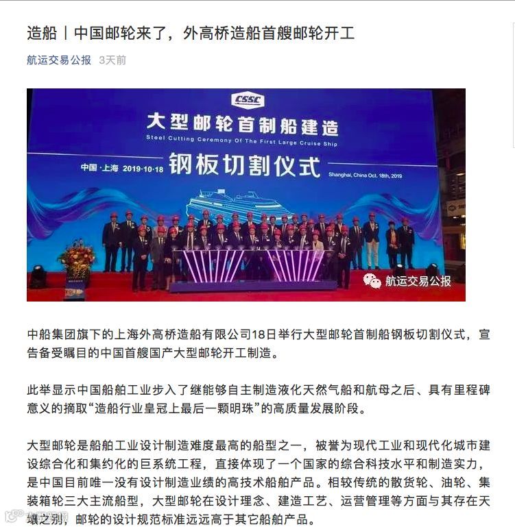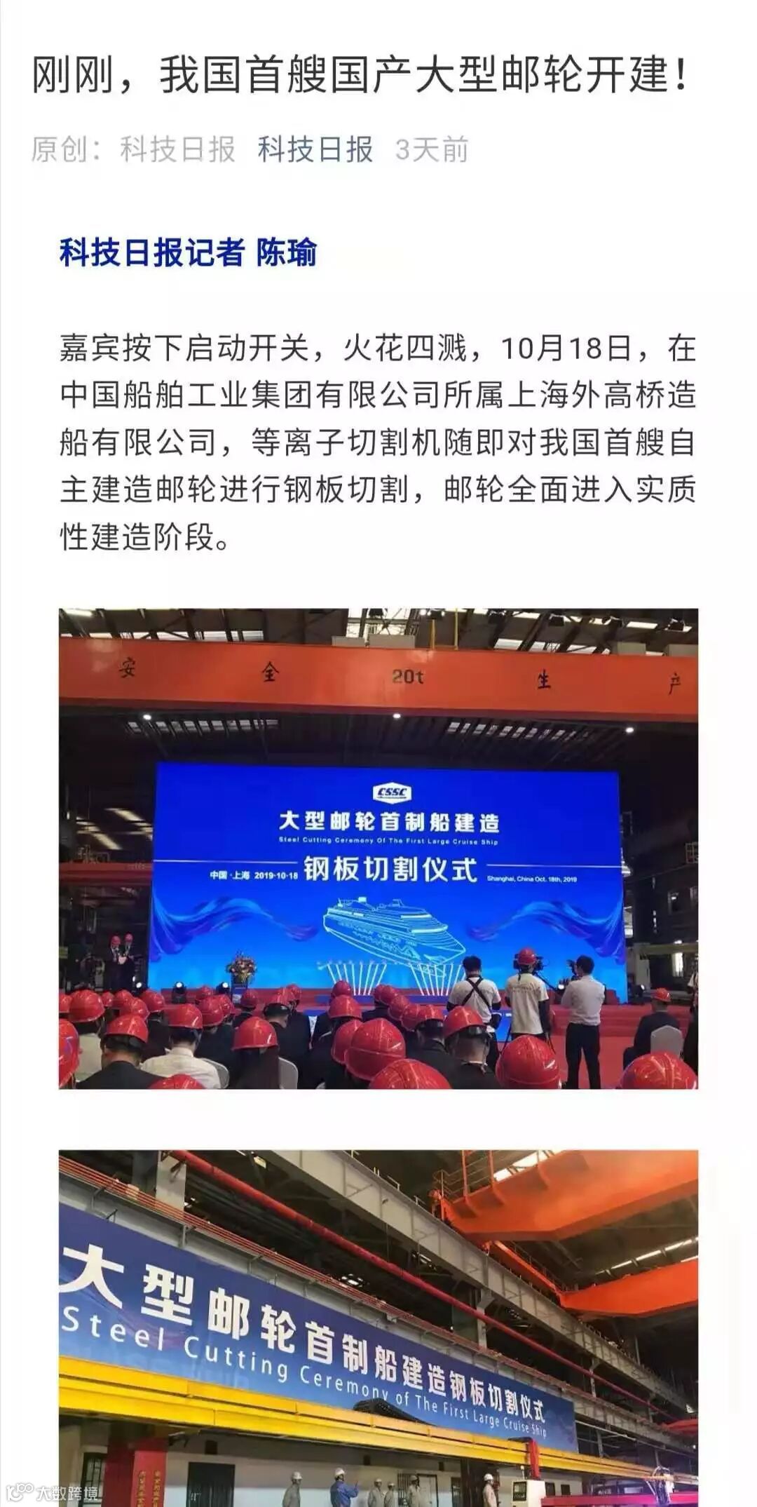 造船丨中国邮轮来了,外高桥造船首艘邮轮开工