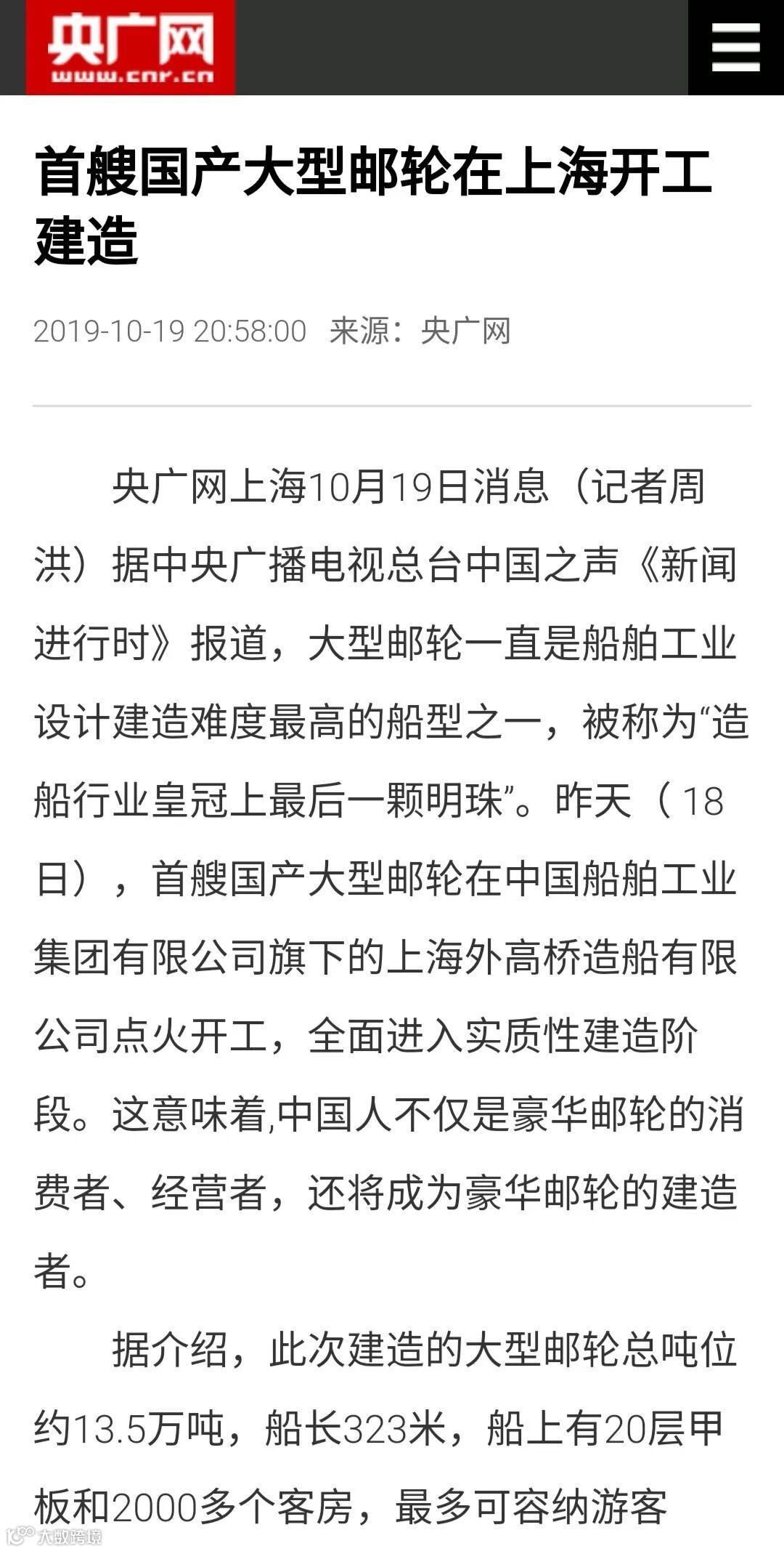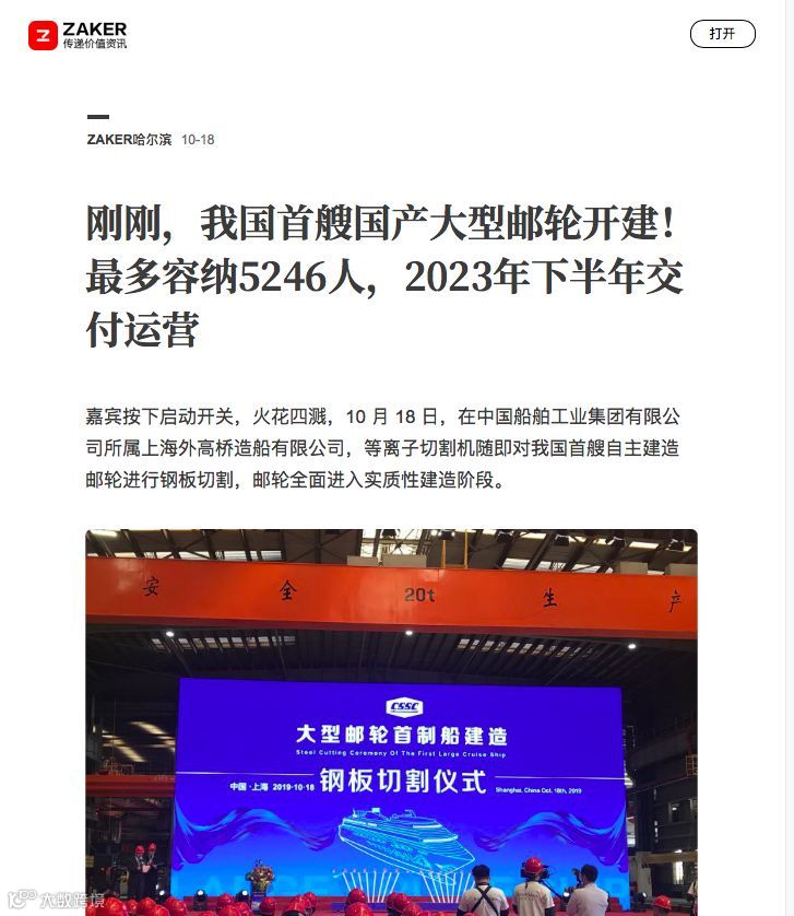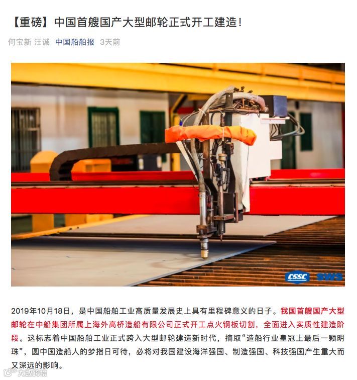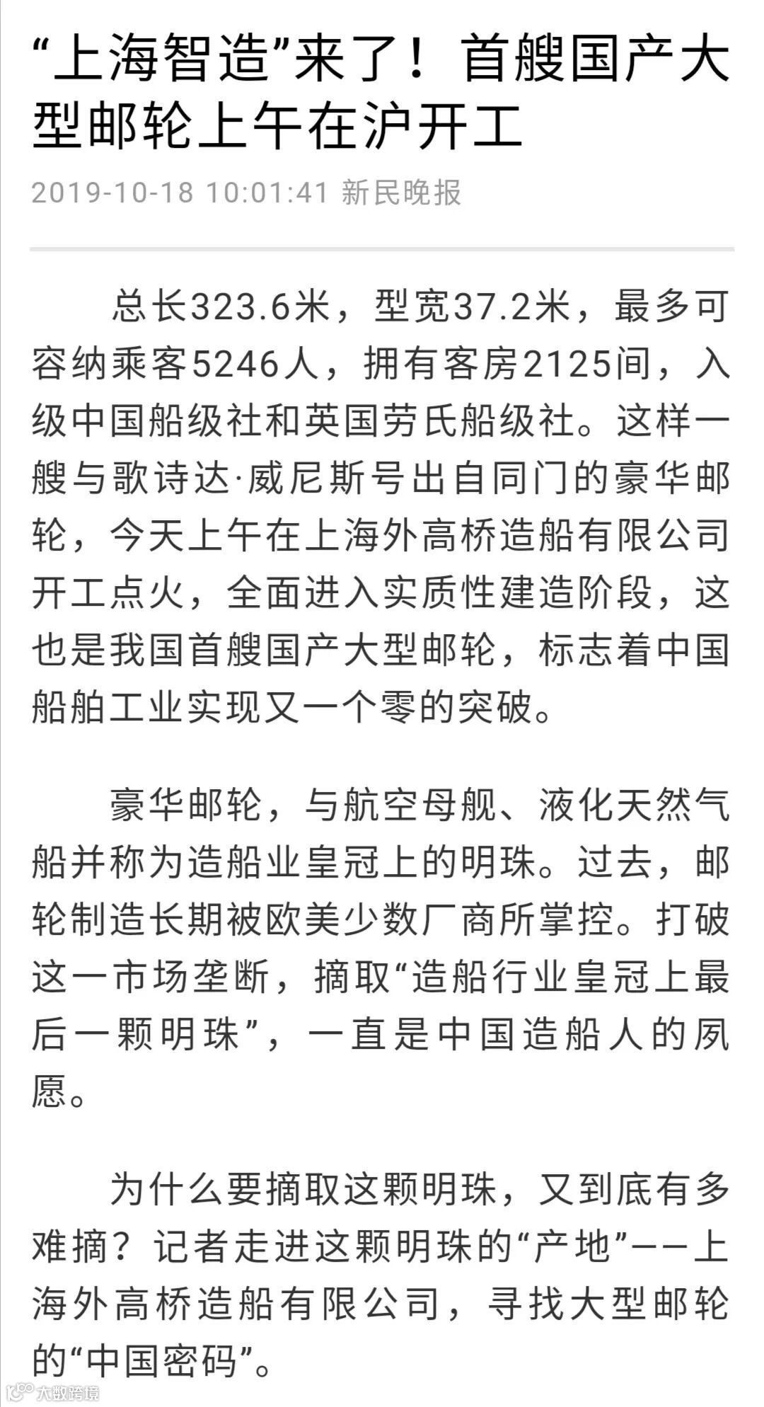 造船丨中国邮轮来了,外高桥造船首艘邮轮开工