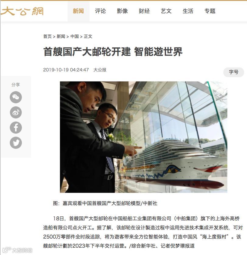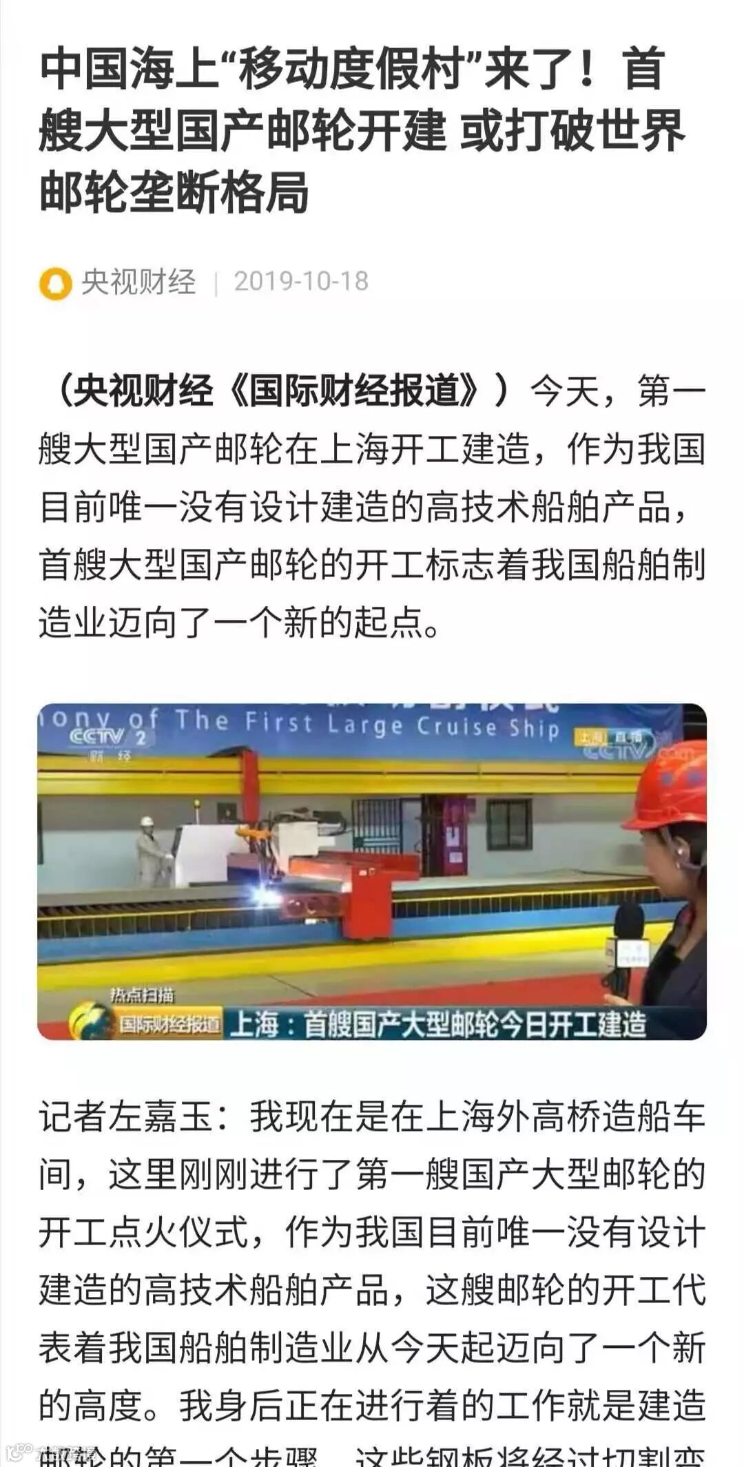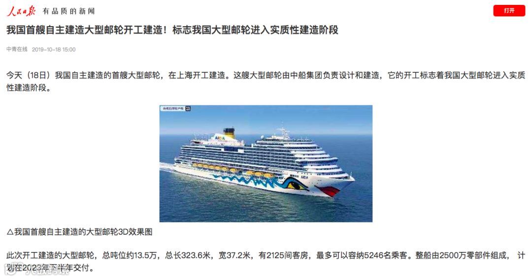 【重磅】中国首艘国产大型邮轮正式开工建造!