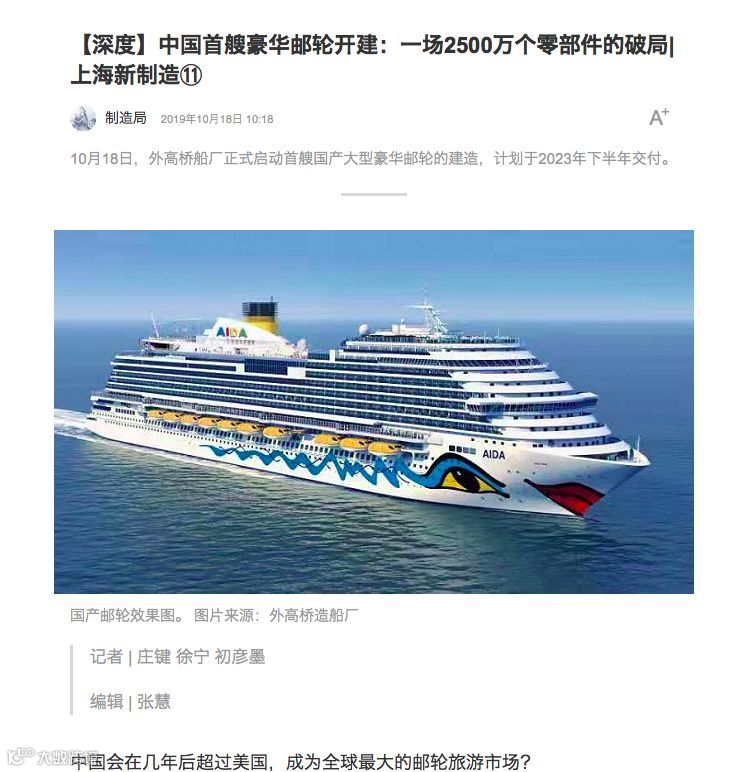 【深度】中国首艘豪华邮轮开建:一场2500万个零部件的破局|上海新制造⑪