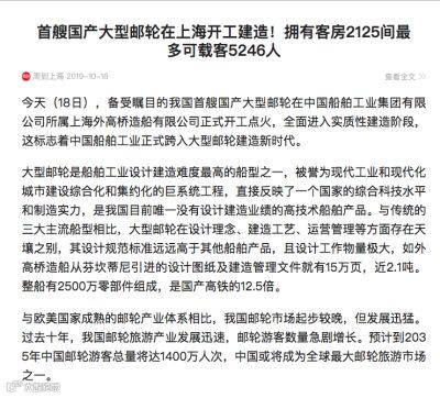 13.5万吨,可载5246名乘客!即将在上海开工的首艘国产大型邮轮,为什么要靠国际合作?