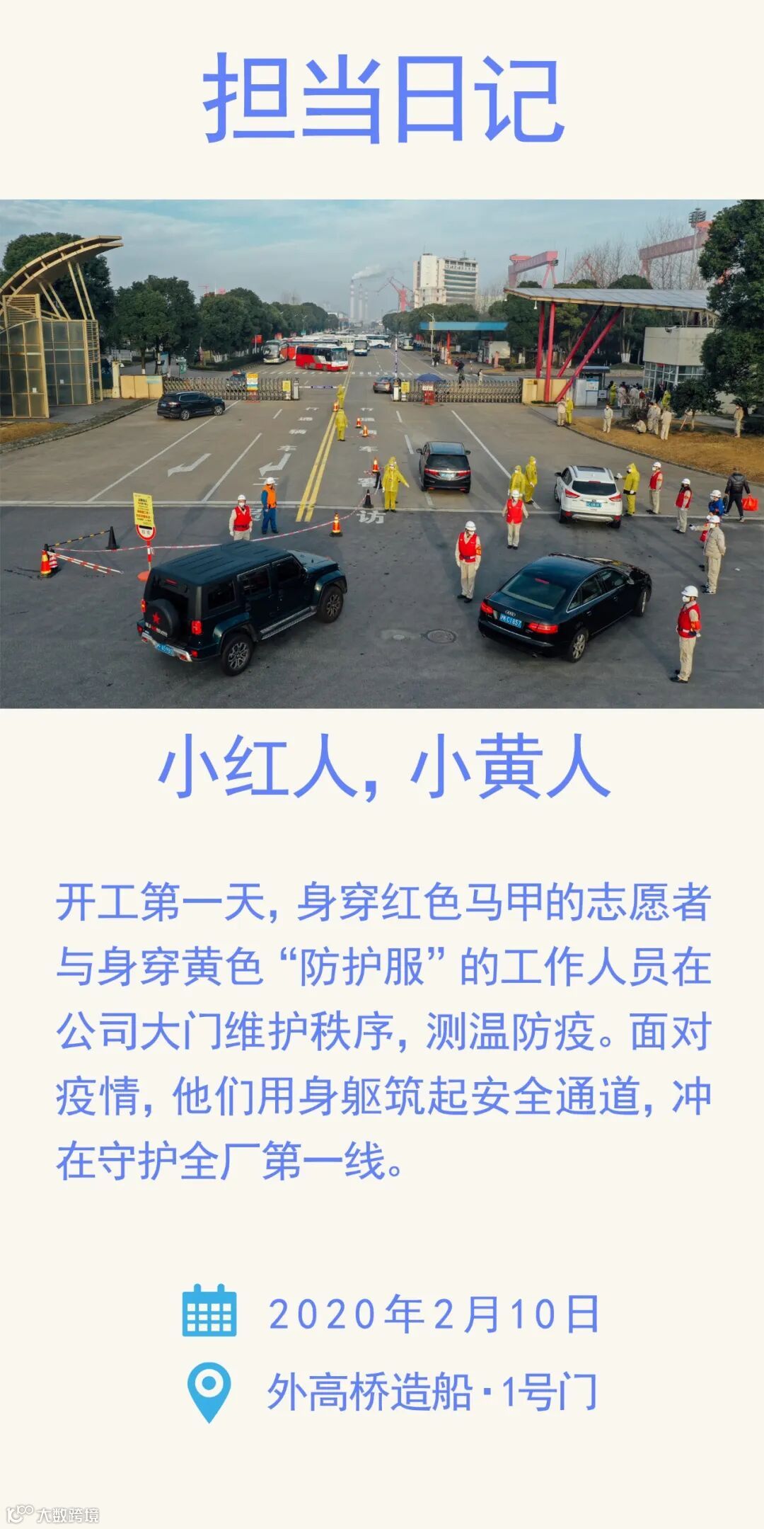 以小见大,张师傅只是千百个担当奉献者中的一员。开工以来,各部门都涌现出了一批热心为同事服务的人。在每个需要消毒的角落、食堂领取大量盒饭的窗口、筛查测温的门前,他们戴着严实的口罩,或手拿喷壶,或大包小袋,或“枪”口对人,凭一己之力维护一方净土,他们都是最美的人。向他们致敬!