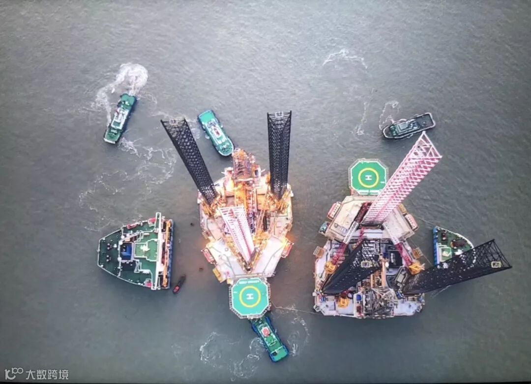 近日,公司为山东海洋集团建造的CJ46型和CJ50型两座自升式钻井平台在外高桥海工顺利交付运营,两座平台分别于12月8日和9日运抵绿华山南锚地换旗装船,由同一艘半潜船干拖运载,前往卡塔尔北部海域,为卡塔尔国家石油公司提供海上油气钻井服务。