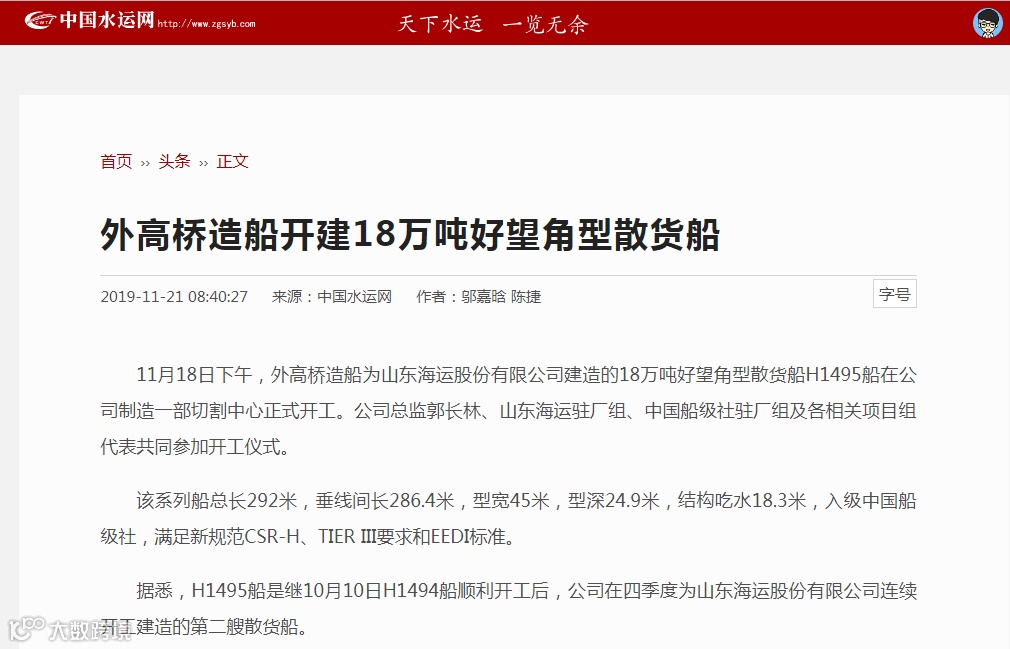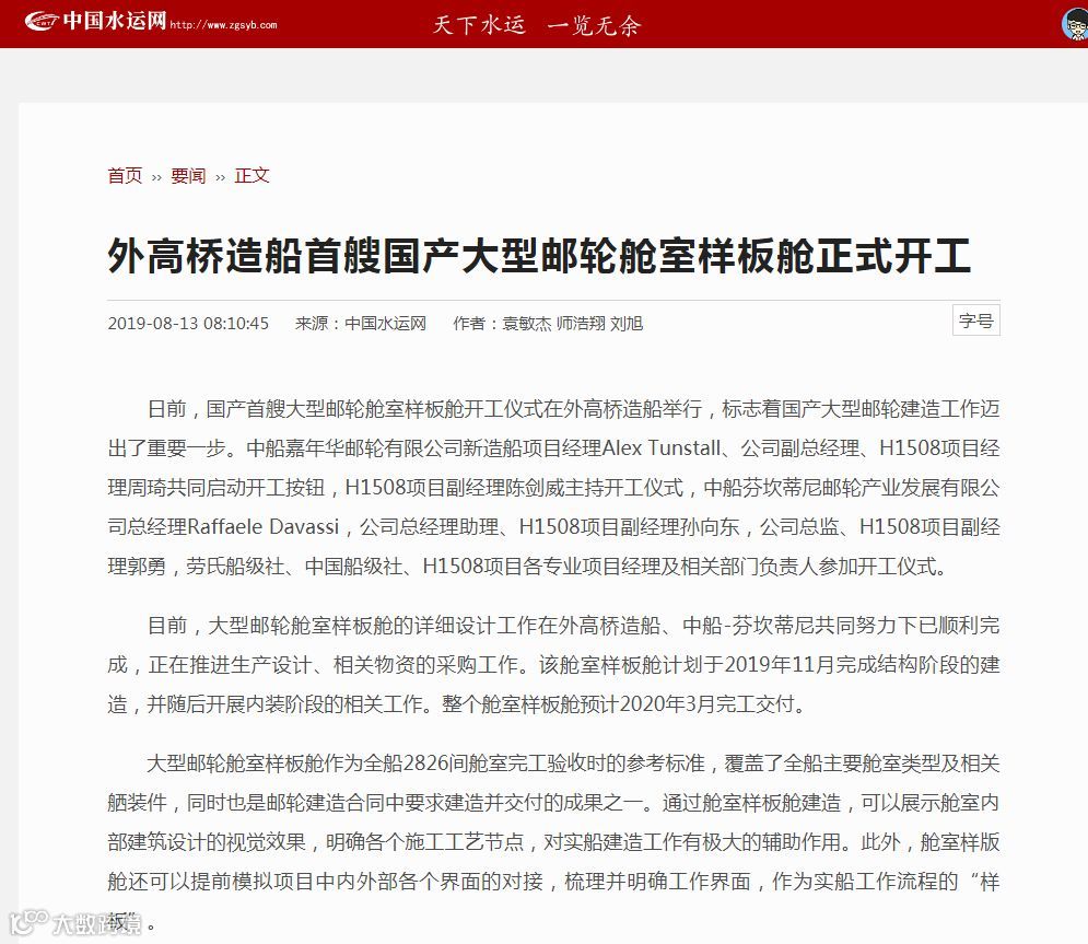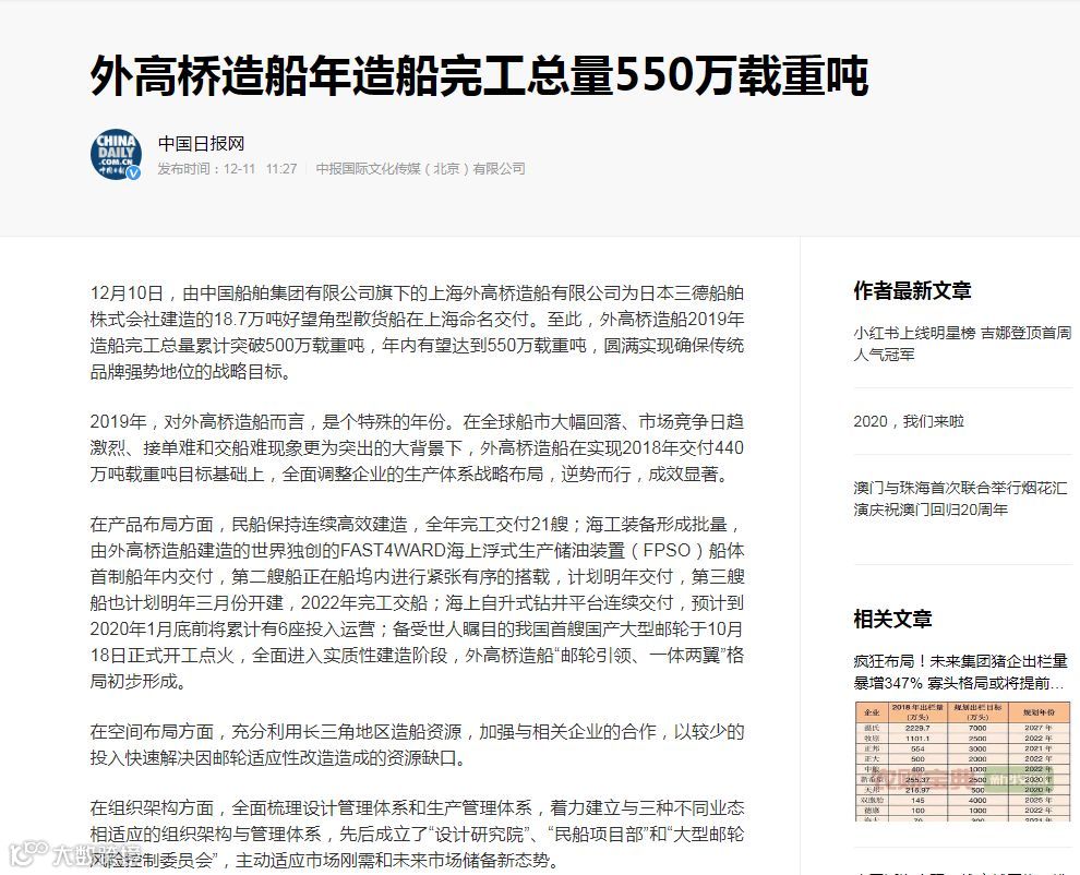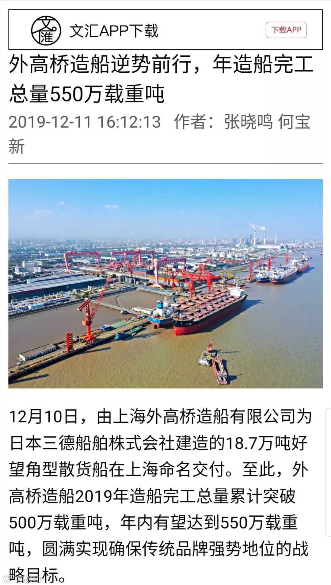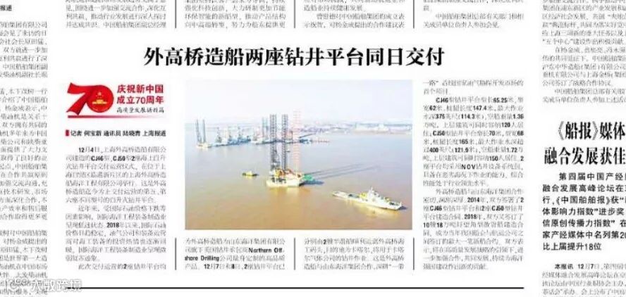 媒体报道忠实记录着外高桥造船人奋斗的足迹。现在,让我们跟随媒体再次回顾外高桥造船2019年下半年的荣光时刻吧!