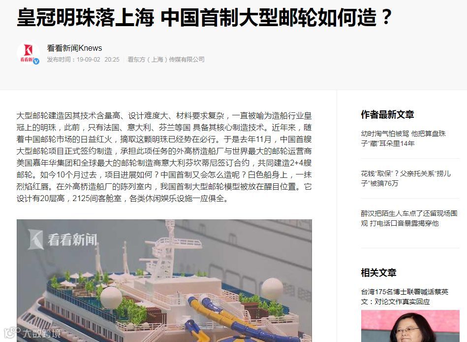 跟着央视走进大型邮轮设计建造团队 看外高桥造船如何摘取世界造船业“皇冠上的明珠”