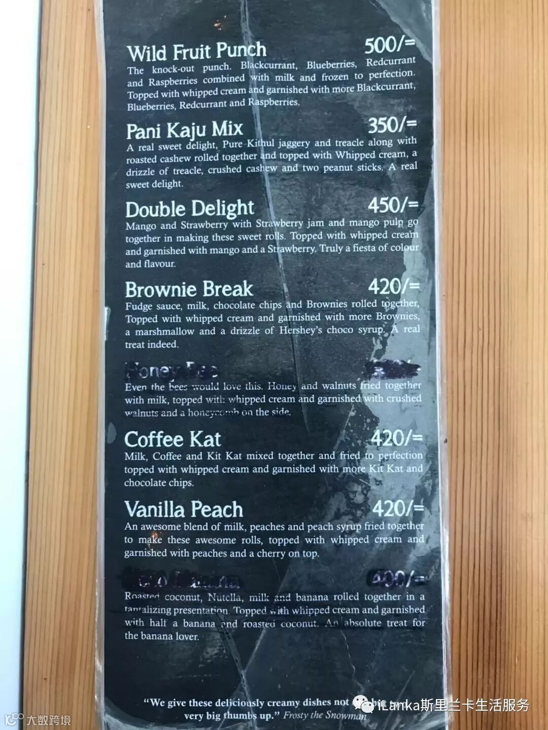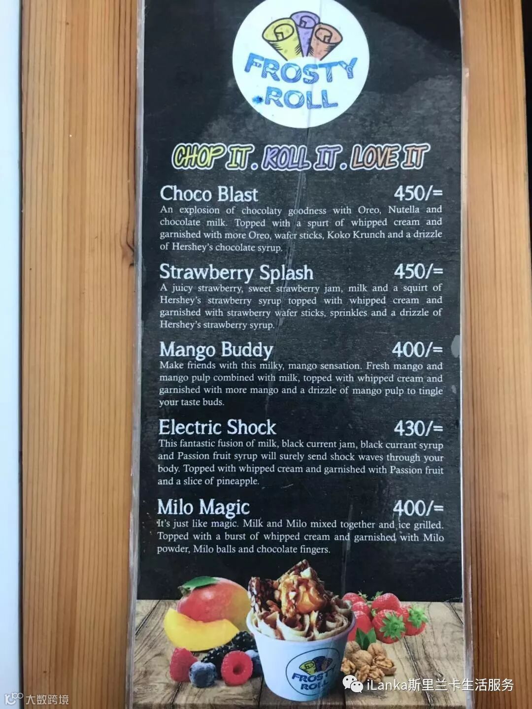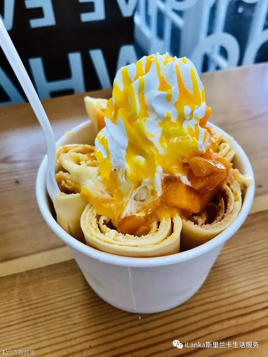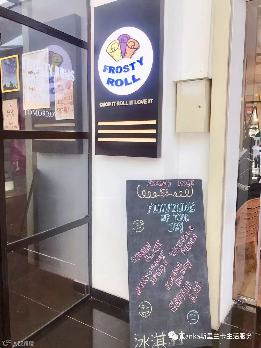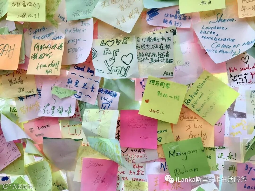 Frosty Roll店面很小,一张吧台,三张桌子。但装修是ins风,很有格调。玻璃墙上满是顾客们留下的便签条,食客们用中文、英文、僧伽罗语写下了对冰淇淋的喜爱。由此可见这家店客源之广泛。