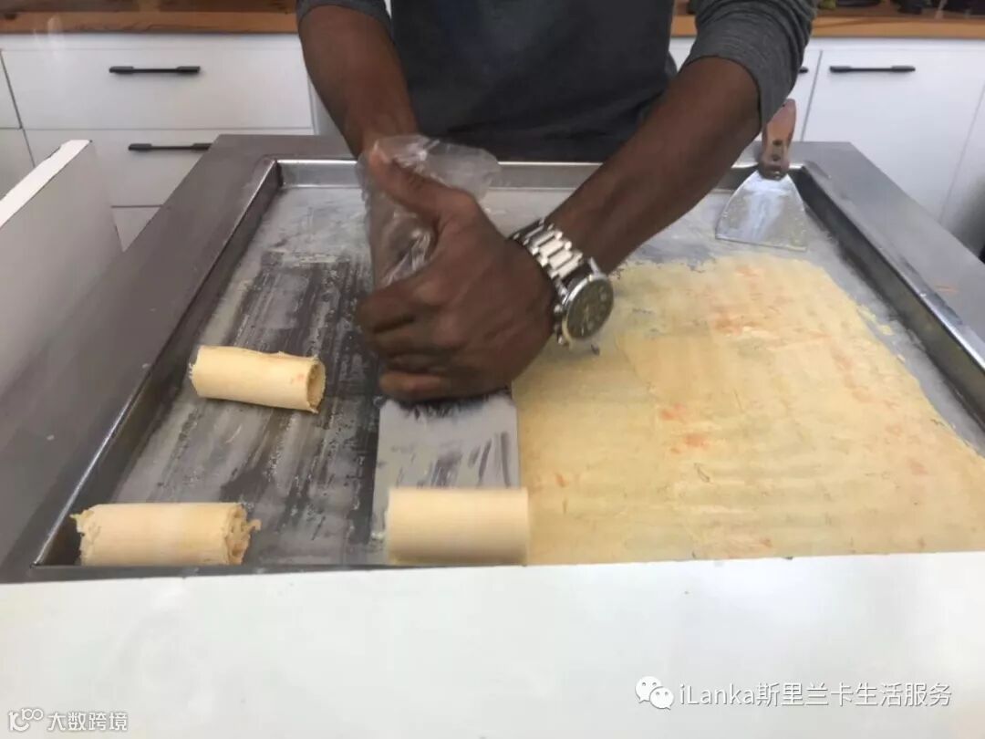 卷卷冰淇淋的做法很像炒酸奶。在兰卡吃不到炒酸奶,品尝一下先“炒”后卷的冰淇淋也不失为一种乐趣。