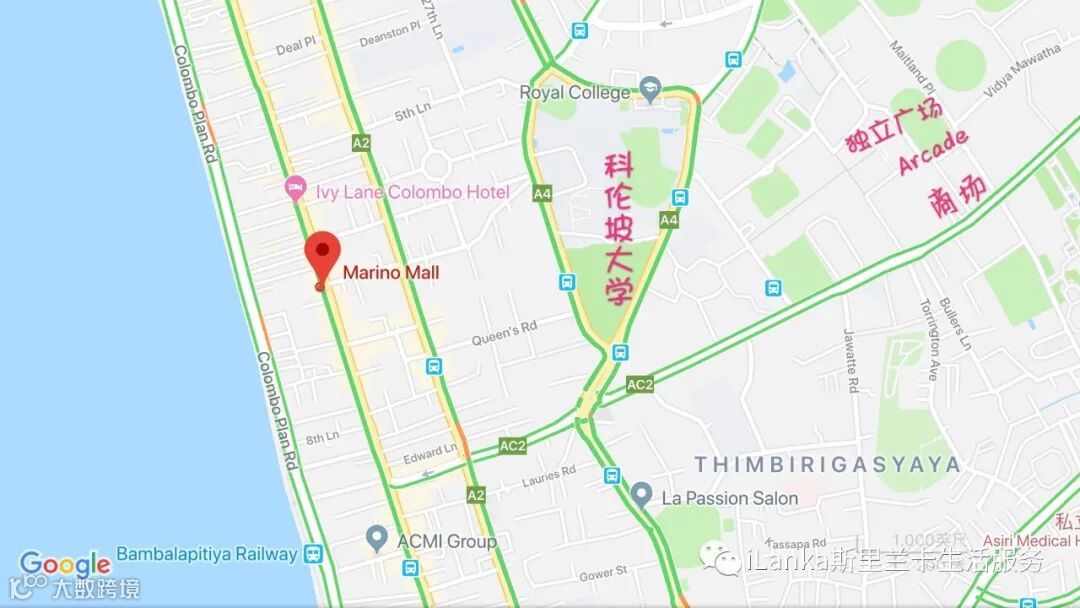 这个商场,其实也是今年刚开业的,位于科伦坡三区的Galle Road上,离Sri Lanka Tea Board斯里兰卡茶叶局不远。这家商场别看门脸不算大,但进深很可以,一直到了科伦坡的海边路边,可以在楼里看到“海上火车”的穿行哦~