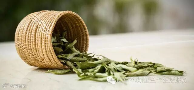 咖喱叶是一种柑橘树的小叶片,原产于南亚,主要被用在印度南部的菜肴当中,制作咖喱的时候经常用到这种叶子。除了斯里兰卡咖喱,印度、马来西亚等地的咖喱菜肴中也经常用这种叶子。咖喱叶香味温和厚重,能够促进食欲,也可以为菜肴增加一种微妙和辛辣的味道。自家带院子的兰卡人通常都会在院子里种有这种树,做菜的时候现摘,用油炸脆后逼出香味。