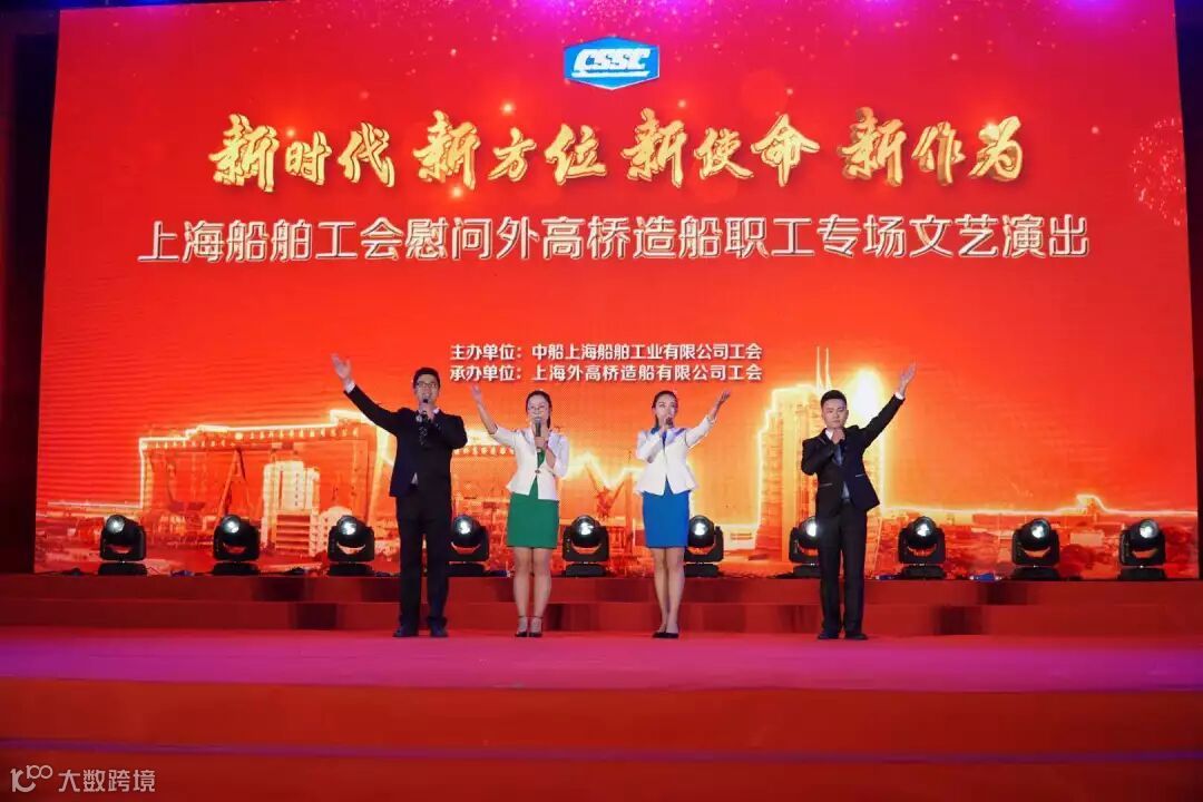 10月17日晚,上海船舶工会在公司综合楼广场举行“新时代 新方位 新使命 新作为”职工专场文艺演出,热烈祝贺公司建厂十九周年。上海船舶公司党委书记、董事长高烽,副总经理王晓旭、姚力、施卫东,上海市职工文化协会副会长侯伟康,公司党委书记、董事长王琦,总会计师陈琼,党委副书记、工会主席袁飞鹏等领导和2000多名公司职工一同观看演出。本场文化盛宴由上海船舶公司工会主办,外高桥造船工会承办。