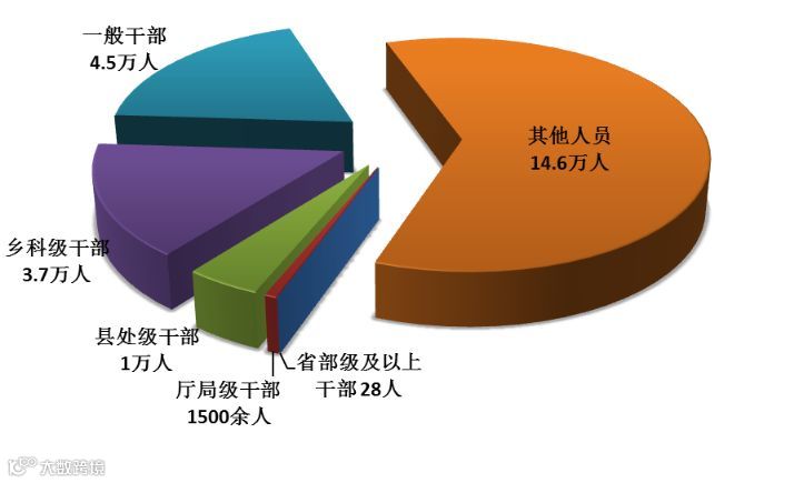 2018年上半年,全国纪检监察机关共接受信访举报168.3万件次,处置问题线索74万件,谈话函询15.4万件次,立案30.2万件,处分24万人(其中党纪处分20.1万人)。处分省部级及以上干部28人,厅局级干部1500余人,县处级干部1万人,乡科级干部3.7万人,一般干部4.5万人,农村、企业等其他人员14.6万人。