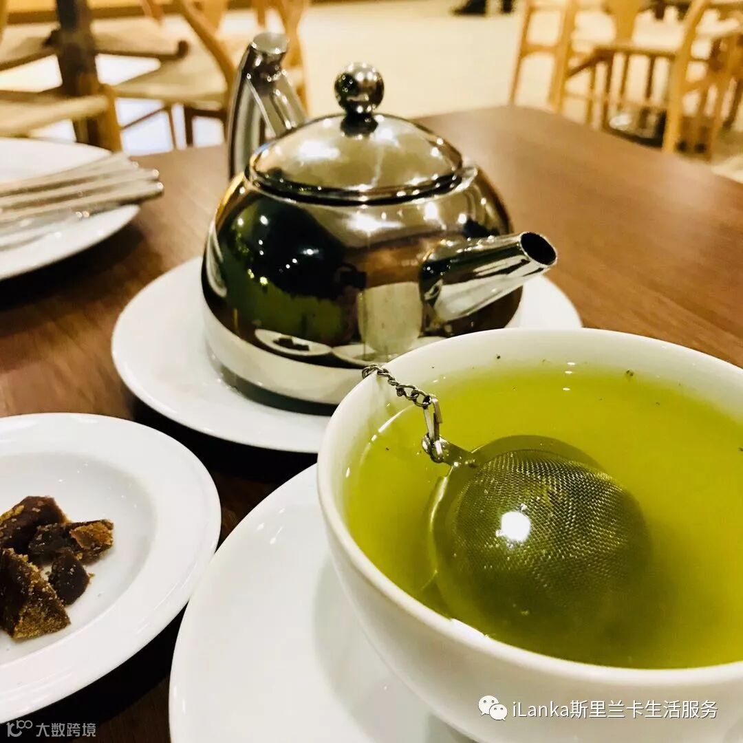 绿茶热饮很别致,上图中的小球,是用于茶叶分离的。旁边的糖块,是为了满足本地兰卡人的喝茶吃糖的习惯。在兰卡待时间长的朋友都知道,大多数兰卡人喝红茶都要加糖,往往不止一勺糖,有时候还配有棕榈糖佐以畅饮。