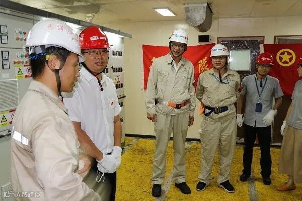 邓海啸一行深入造船现场,登上1号码头在建的40万吨矿砂船,体察高温天气下造船工人的辛苦与付出,并亲切慰问了“2017年上海市青年突击队”——机装调试青年突击队队员和现场青年。