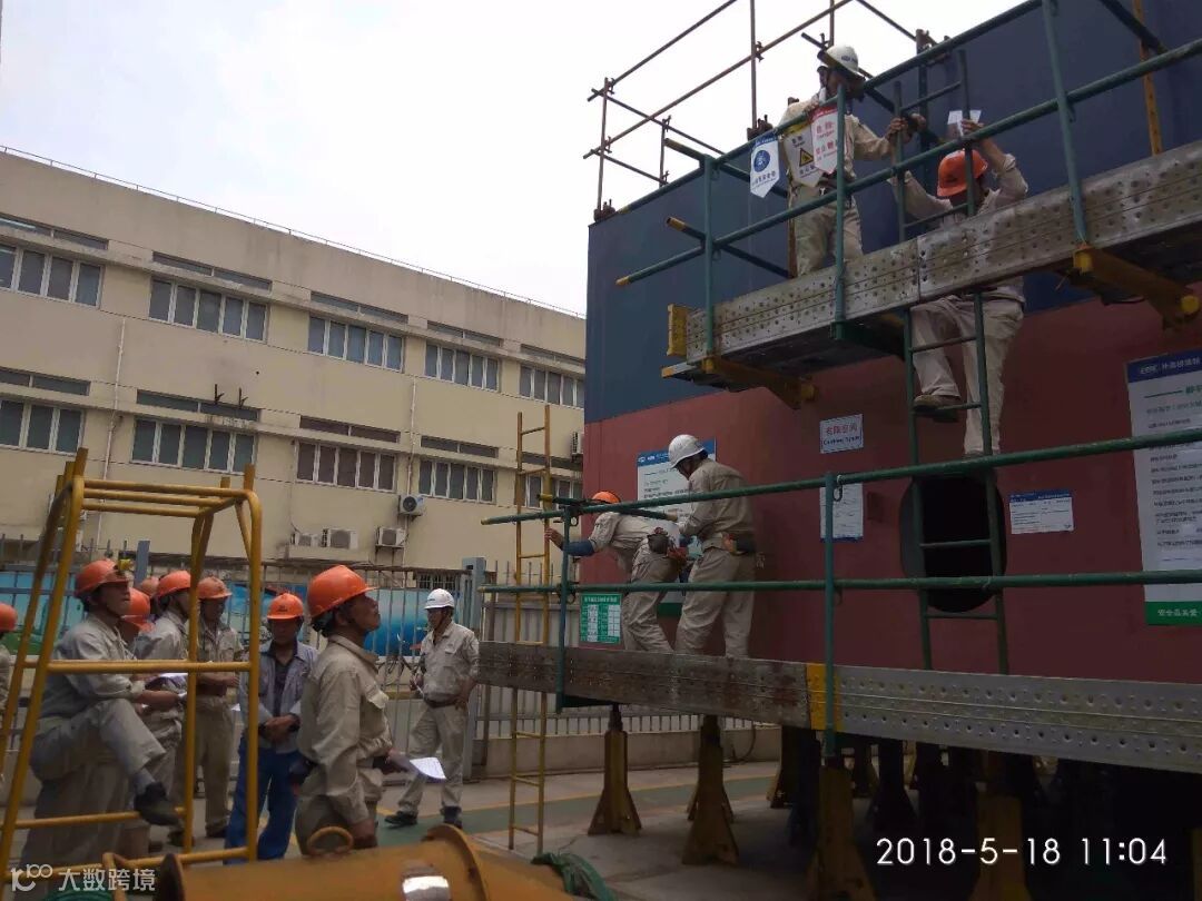 脚手架搭设安全和巡检培训环节,以“关爱号”分段脚手架为培训教具,各小组学员针对分段脚手架进行巡检,并做好巡检意见的记录,通过师生互动的形式,使学员掌握公司脚手架安全管理的相关标准和要求。