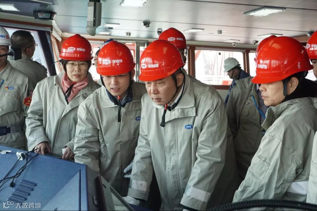 孙伟在公司总经理陈刚的陪同下登船实地调研了超大型智能矿砂船首制示范船的研制情况。公司技术人员向孙伟一行介绍了超大型智能矿砂船示范船的技术创新点及智能系统工作原理。