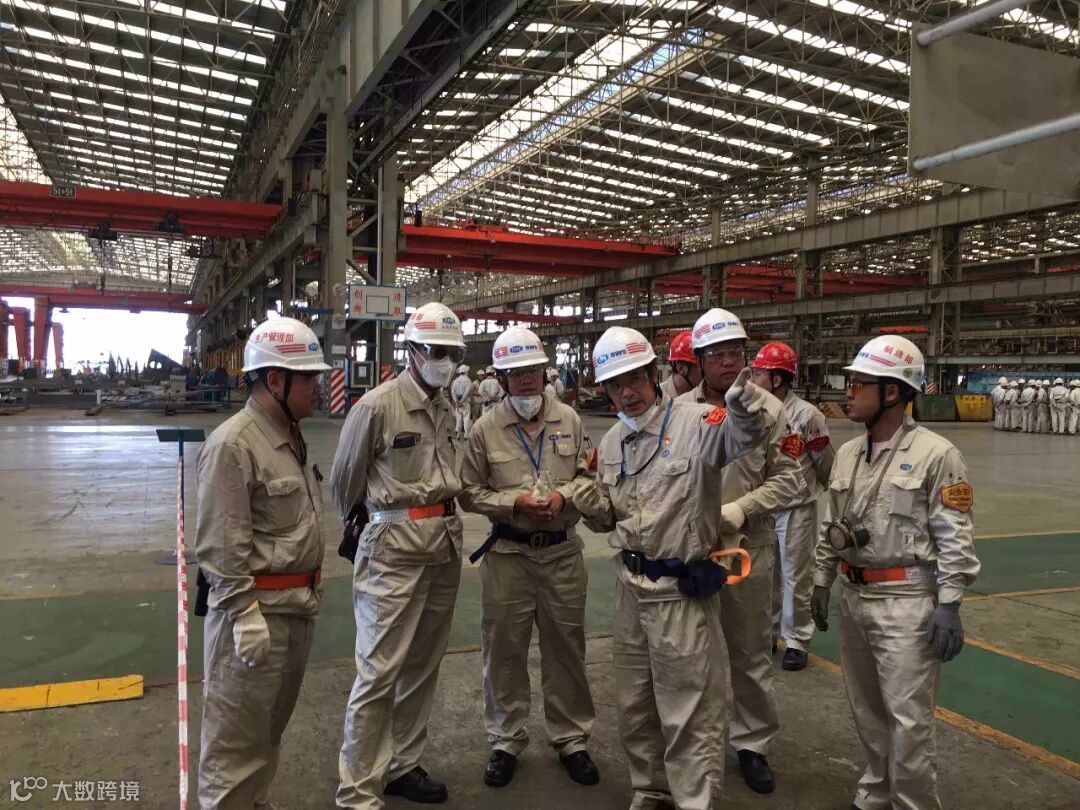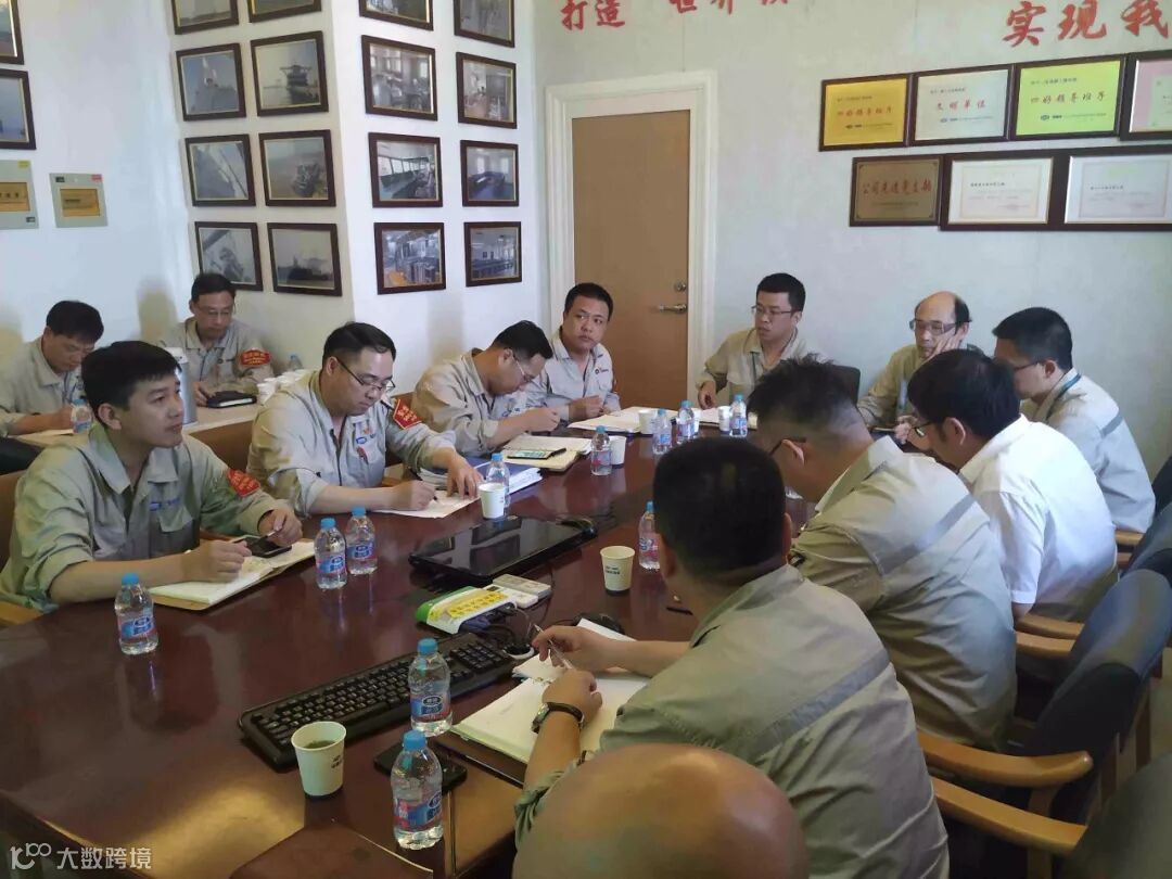 2018年06月14日上午,外高桥海工召开2018年上半年生产工作及FPSO项目准备工作汇报会议,外高桥造船副总经理、外高桥海工董事长周琦、外高桥造船总工艺师刘建峰、以及生产管理部、配套部等部门负责人前往外高桥海工进行现场调研;外高桥海工总经理陈剑威、副总经理聂祥等陪同调研。